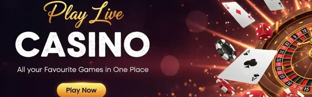 Play live casino games like Teen Patti, Andar Bahar, Poker, Roulette, and Baccarat